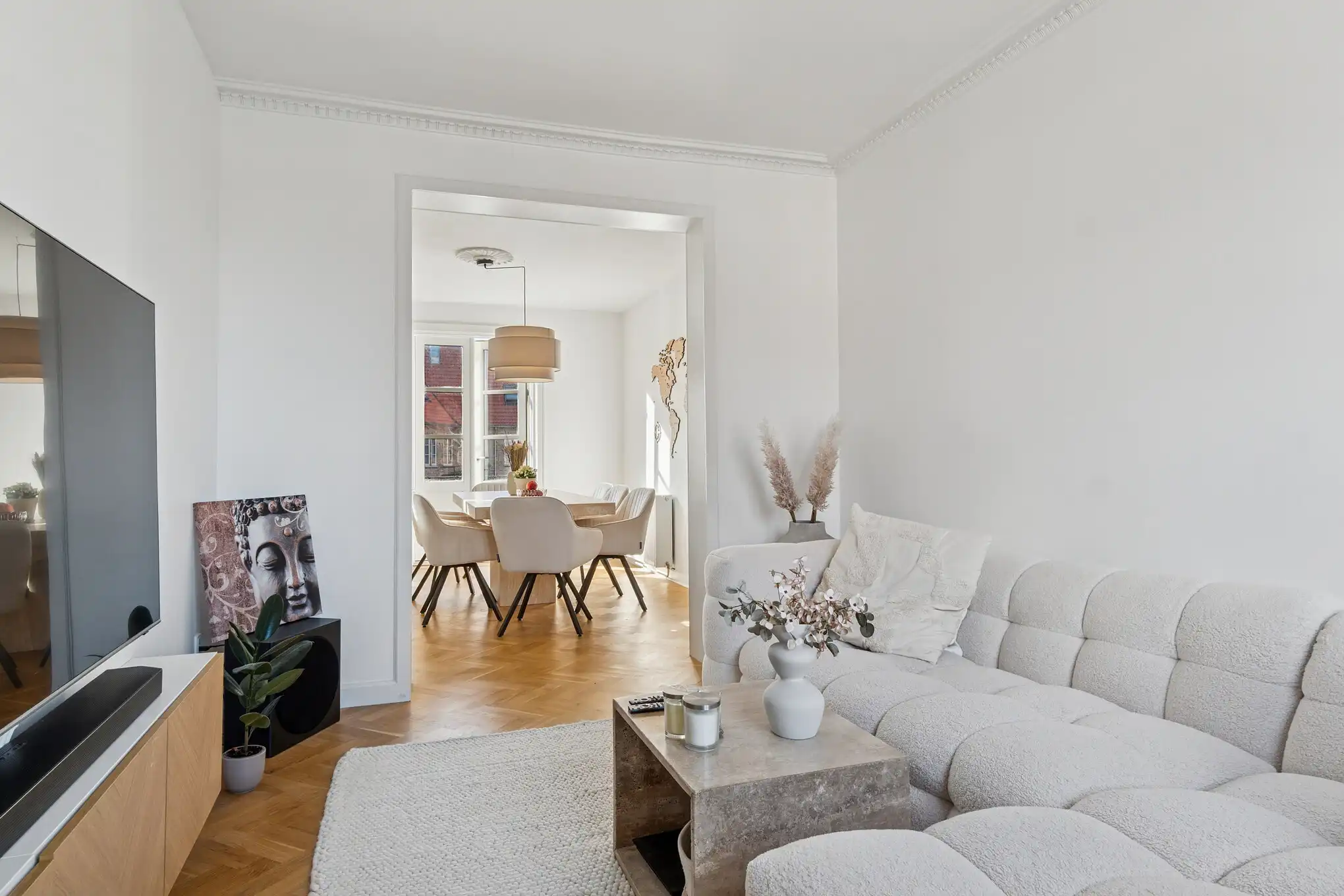 - Nyrenoveret med sildebensgulve og moderne køkken-alrum
